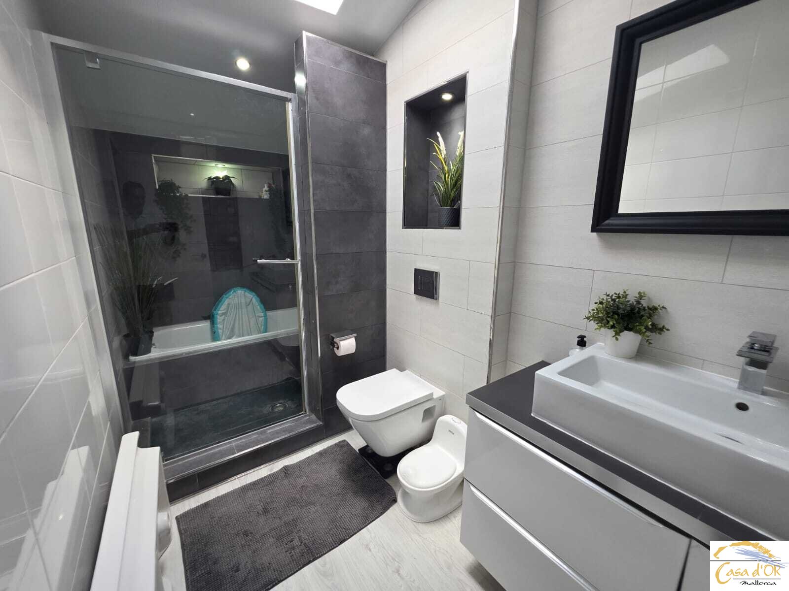 - Badezimmer mit Badewanne und Dusche