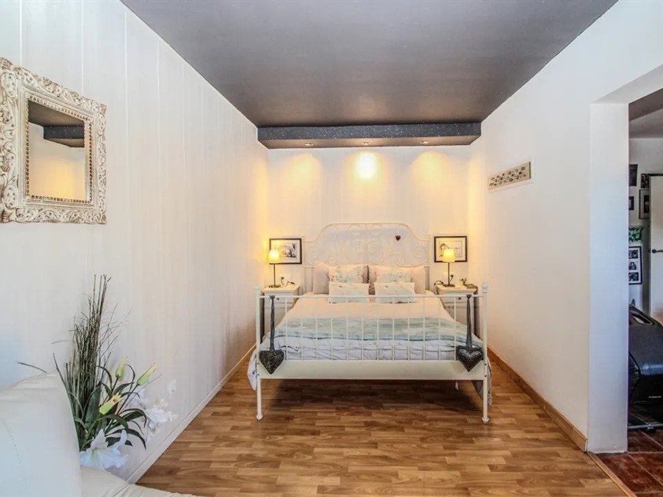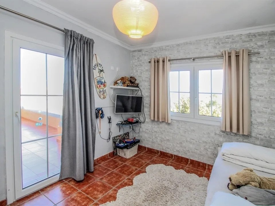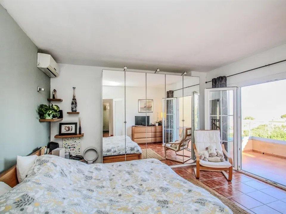 The house, built in 1995 on a 360m² plot, offers a living space of 180m² on 2 floors. On the ground floor there is a large living-dining room with a fireplace, a semi-open fully fitted kitchen, a double bedroom with fitted wardrobes and an office, a bathroom and a utility room. The upper floor has 3 double bedrooms with fitted wardrobes, a bathroom, a balcony with a fantastic view of the sea and the mountains.