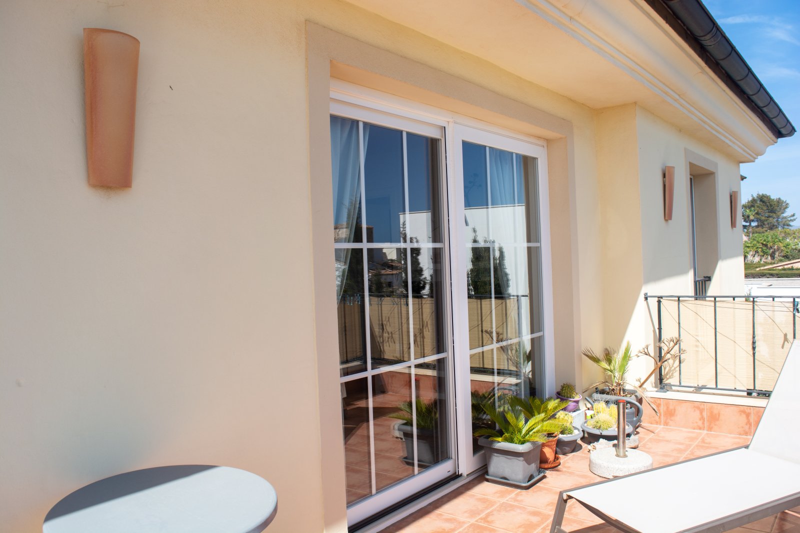 The terrace on the ground floor has vertical awnings in some places, which create a winter garden feeling in the cooler seasons.