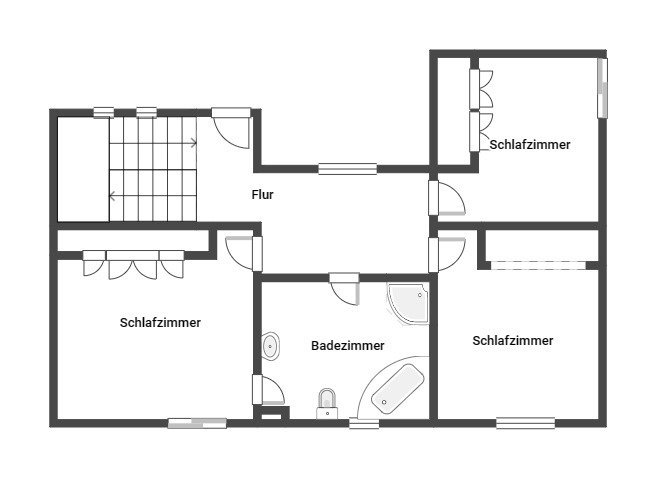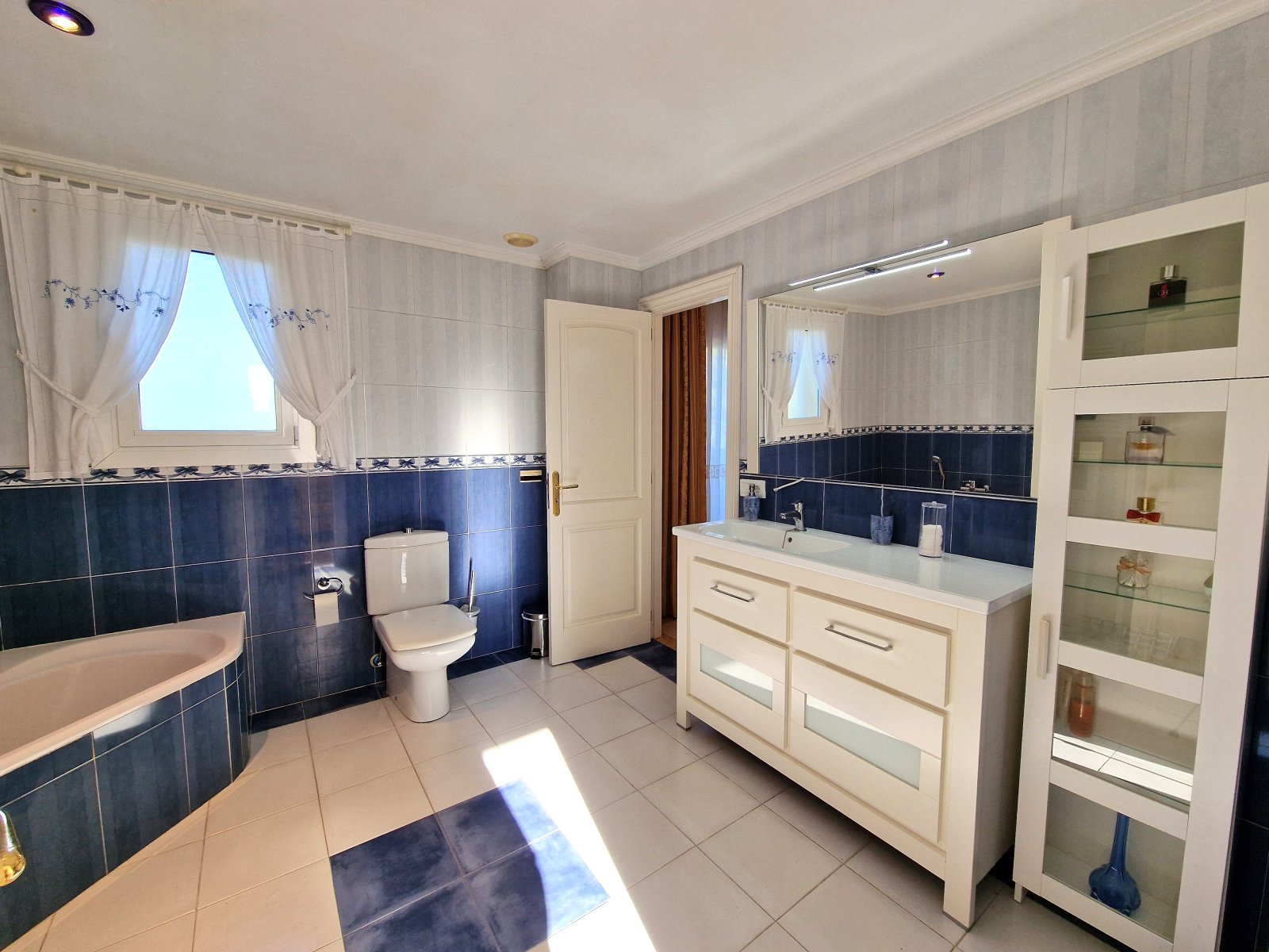 In the upper area you will find a master bedroom with direct access to the large bathroom with corner bath and shower, as well as two further bedrooms that also use this bathroom. Two of the bedrooms have access to a large terrace or balcony. The large bathroom can be divided into 2 bathrooms with little effort, thus increasing privacy.