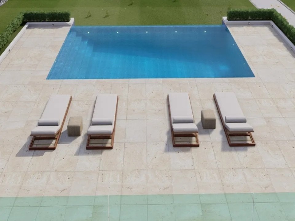 La villa con piscina en la popular Nova Santa Ponsa, en el suroeste de las Islas Baleares, fue completamente renovada en marzo de 2022 y tiene una superficie construida de 1300 m² y ofrece una superficie habitable de 420 m² en dos plantas.